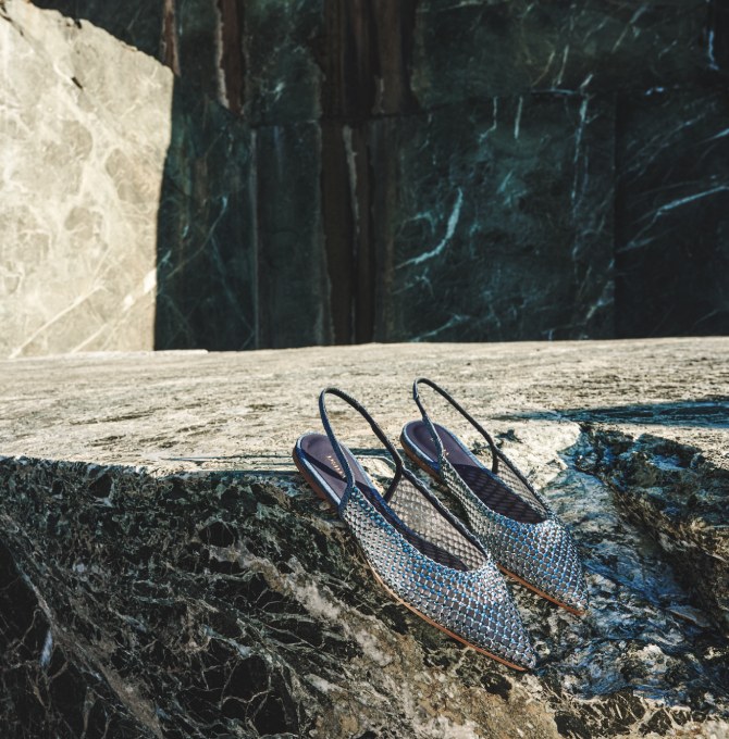 Elegance, sturdiness, and sharp refinement describe the SS24 collections. Designs inspired by the art of knitting, sandals, straw bags, leather sandals, mesh ballerinas, men's loafers and other footwear and bags compose a fresh aesthetic universe.